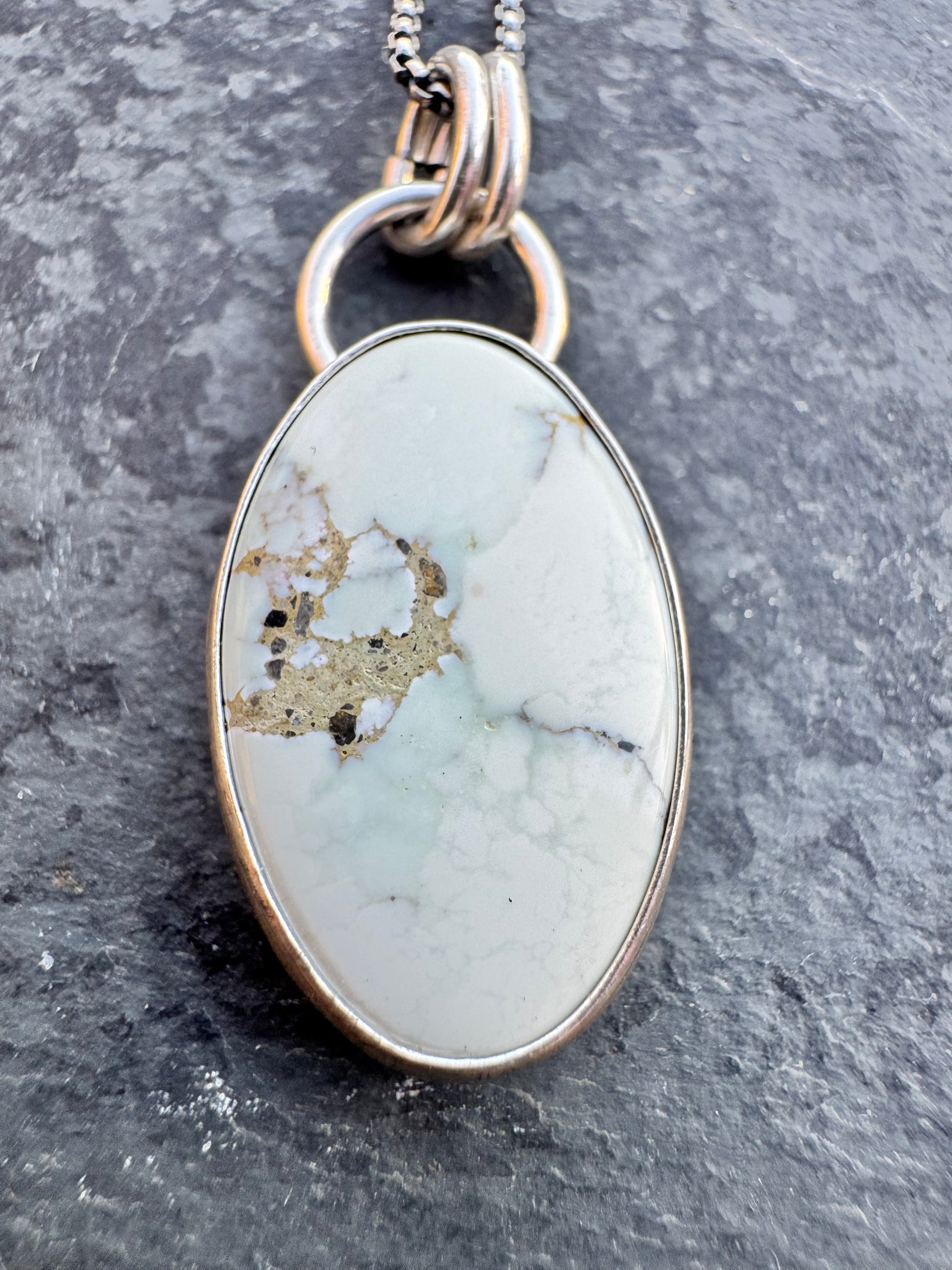 A gorgeous dreamy creamy stone perfect for everyday wear. Sweet and simple. Sterling silver and stone