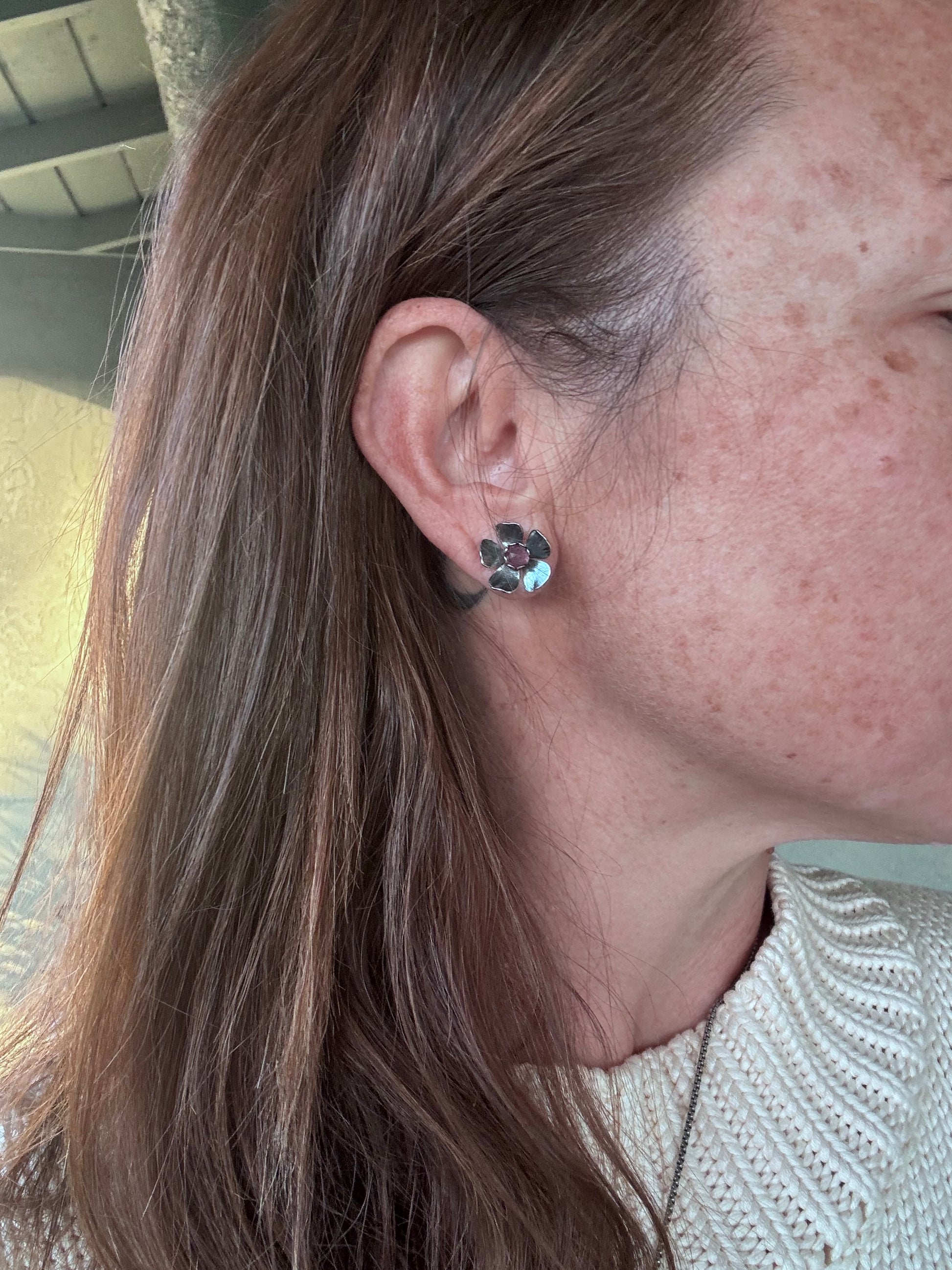 Hand-fabricated flower studs kissed with gorgeous faceted tourmaline—truly the sweetest, most fun little pair. Playful, colorful, and ready to brighten up absolutely any day. 🌸✨