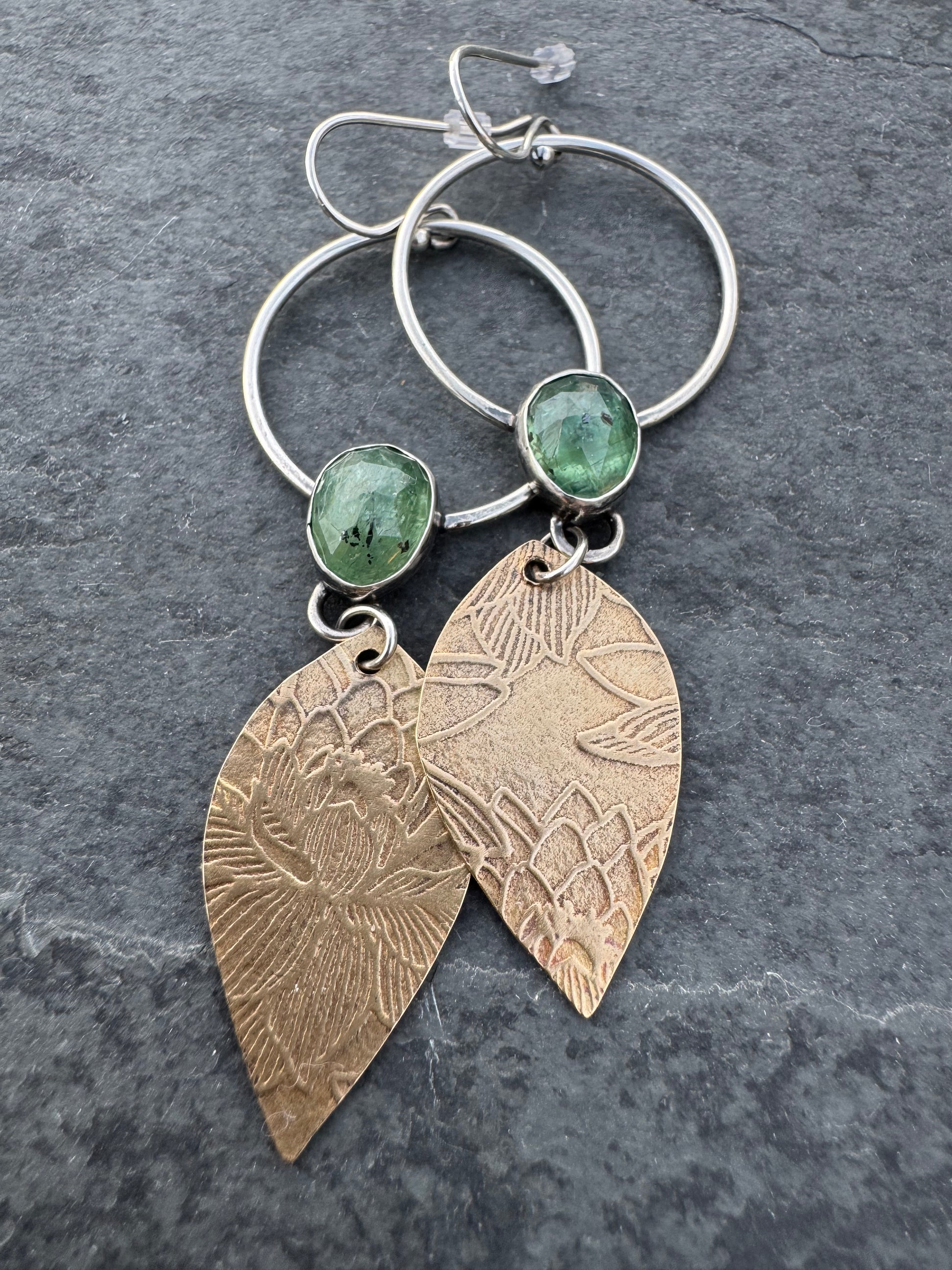 mixed metal, sterling silver and brass, kyanite