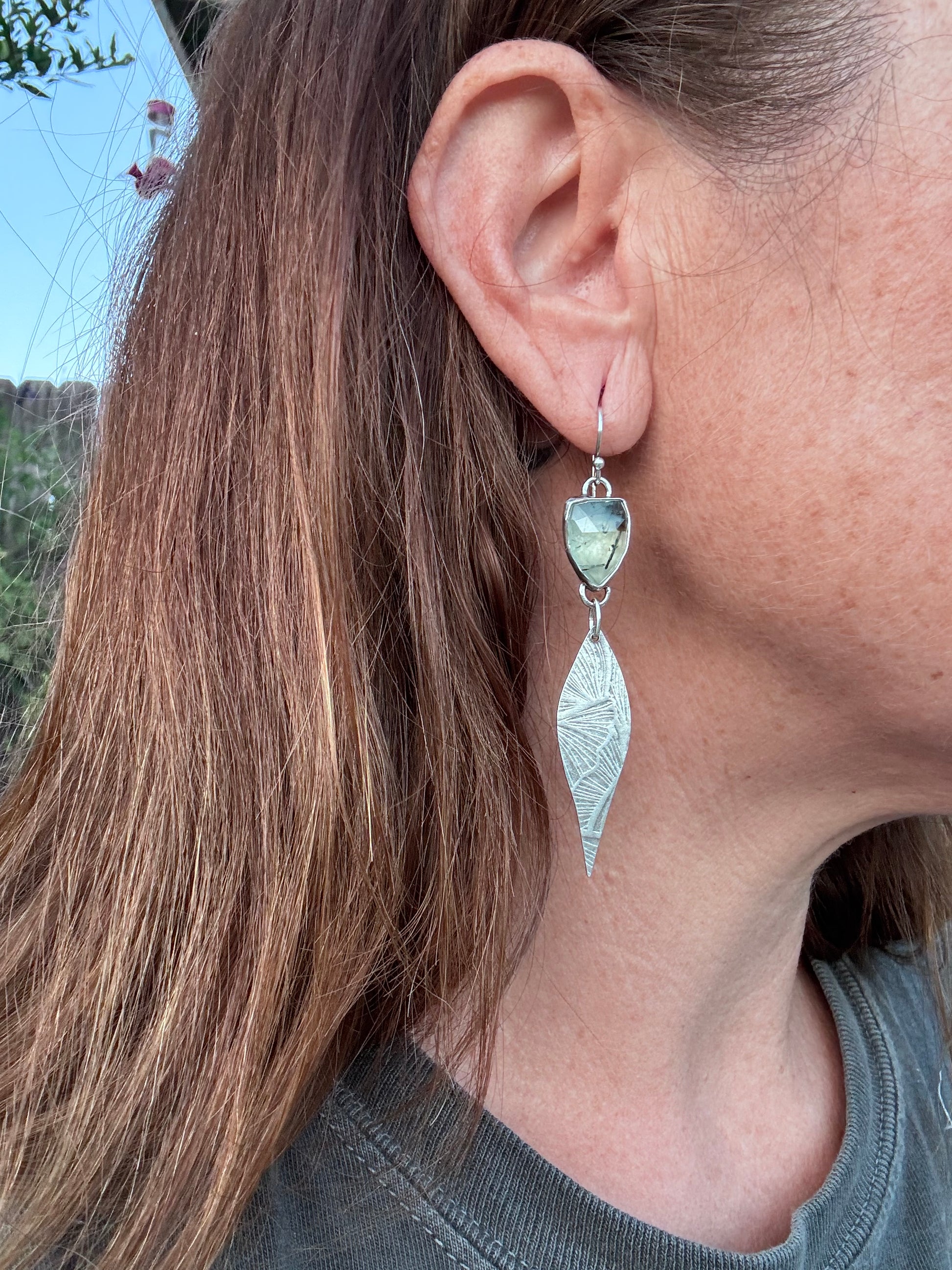An E&A signature design featuring a uniquely shaped Prehnite. Gorgeous color, playful movement, and beautifully lightweight—your next go-to pair.