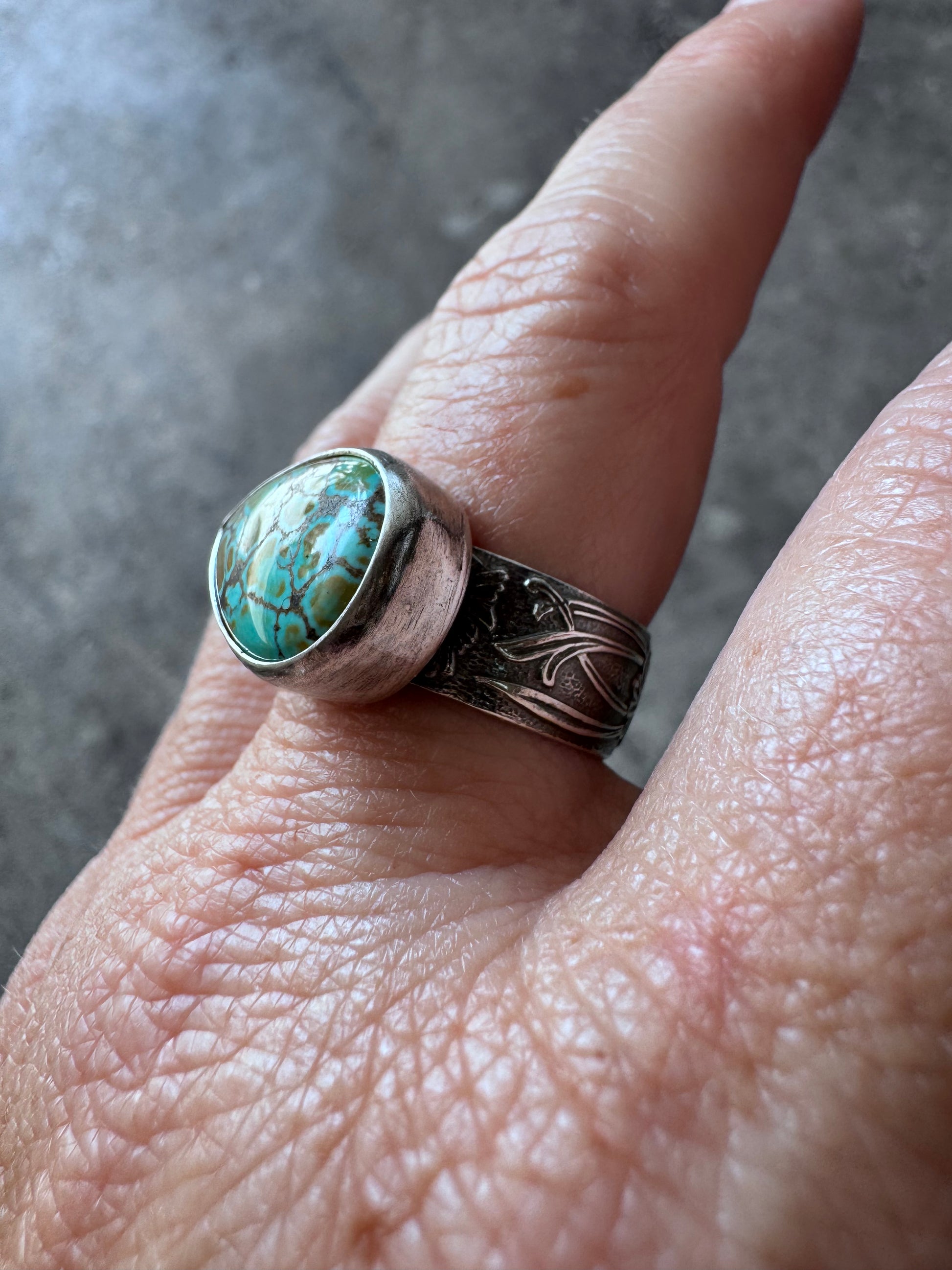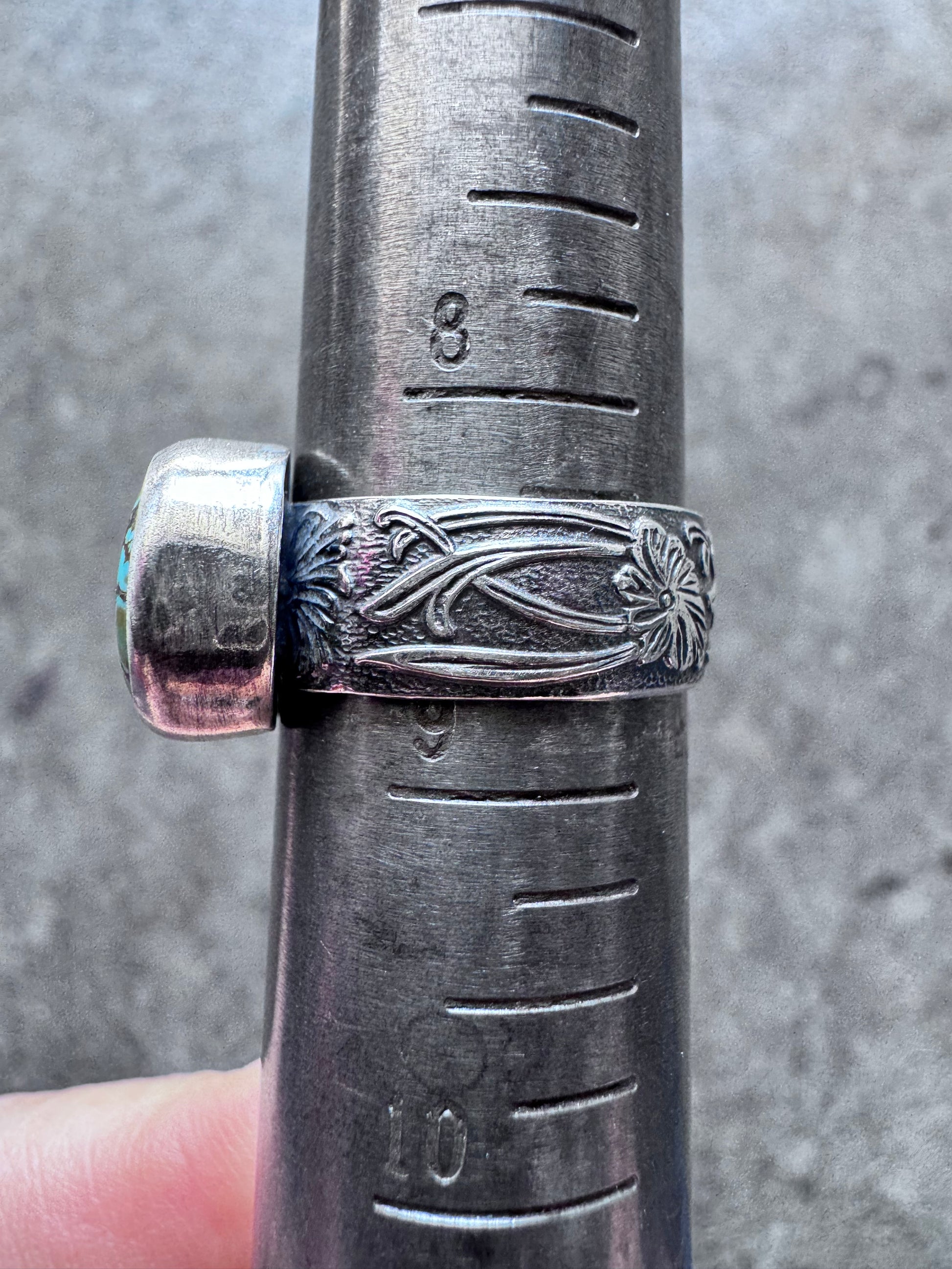 This insanely gorgeous turquoise will be your new obsession ✨ Cool patterns set on a floral band—fun, funky, and perfect for everyday wear. Your new go-to! Size 8.5.