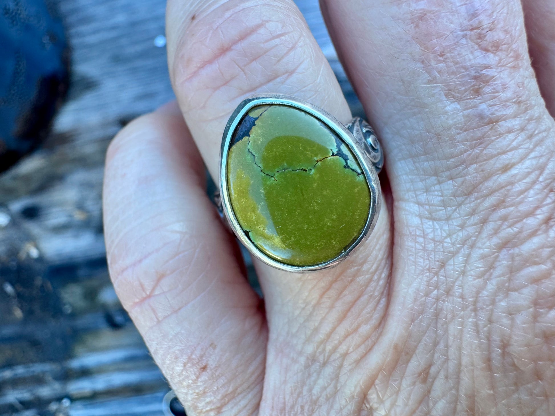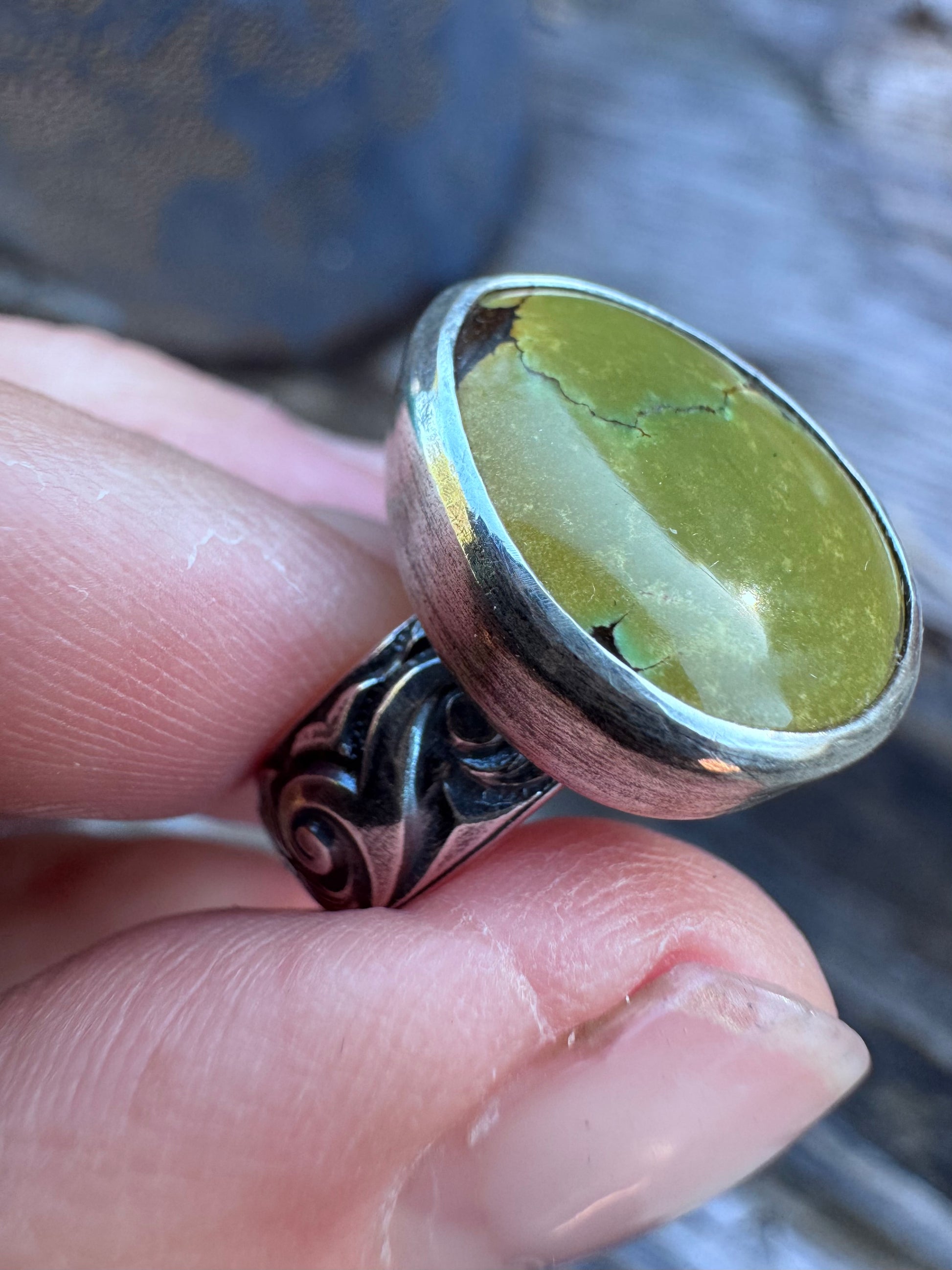 These turquoise rings are perfect for everyday wear—just the right size, not too small, not too big. The gorgeous, vibrant turquoise sits beautifully on a floral, semi-thick band, making this ring a stunning and effortless everyday statement.